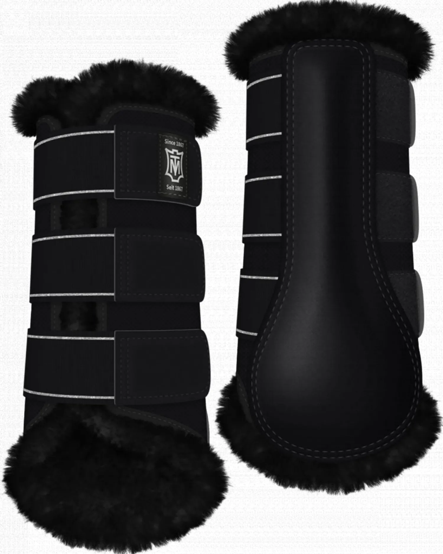 E.A. Mattes Front Sheepskin Boots are designed by Peter Mattes and Klaus Balkenhol to provide superior performance. These front horse boots provide optimal protection and allow the horse’s joints to move freely. Sheepskin’s natural properties as a lining help reduce friction and increase airflow to the horse’s legs. The sheepskin lining can be removed for easy washing. Pair.